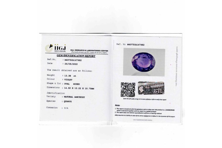 Buy authentic and certified Amethyst stone. Amethyst is a natural stress-alleviating gemstone. It reduces anxiety, fear, anger while balancing your irritable mood swings. Amethyst gemstone is great for removing negativity and sadness. It is also very popular amongst spiritualists and psychics for its intuition-enhancing powers. The cut, color, and clarity are precise for astrological purposes.