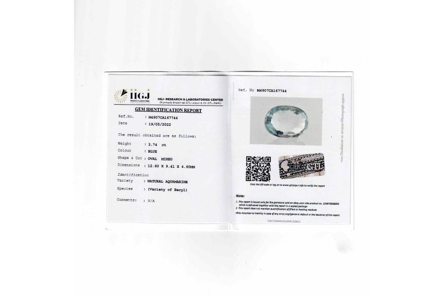 Natural Aquamarine 3.74CT 100% Orignal, untreated-unheated gemstone from India.