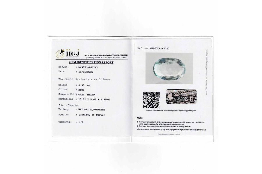 Natural Aquamarine 4.30CT 100% Orignal, untreated-unheated gemstone from India.