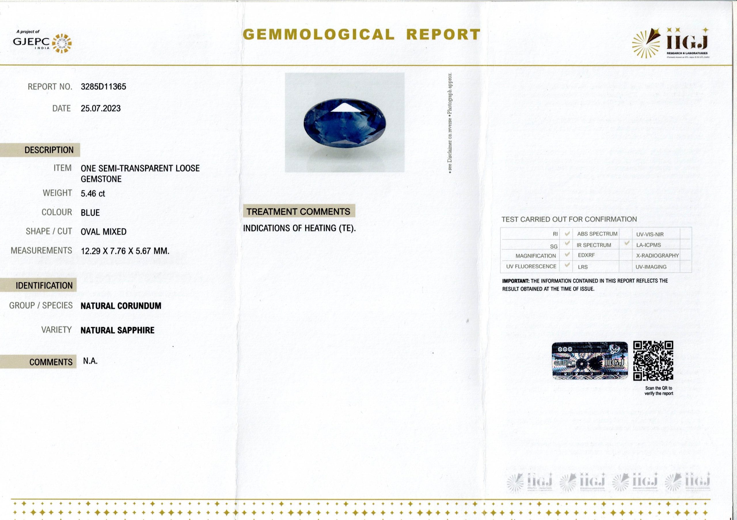 Blue Sapphire 5.46 Carat (6.01 Ratti)
