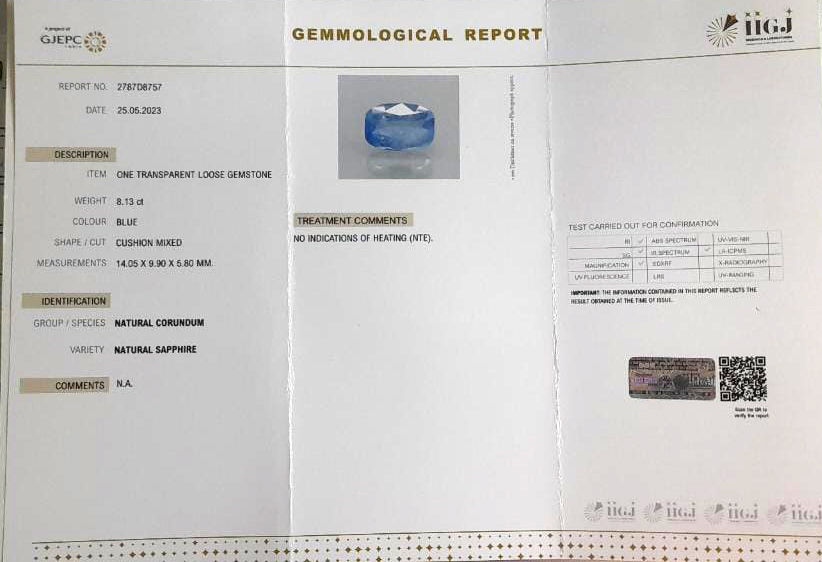 Buy Original and IIGJ(GOVT LAB) Certified Blue Sapphire. photos and videos are available online. Blue Sapphire is the most powerful Astrological Gemstone related to Saturn planet. Neelam (Blue Sapphire Gemstone) has many benefits like professional and marital life, health benefits, blesses a person with immense good luck, wealth and prosperity. For best astrological results, the value and price of stones is good considering its properties and effects. Cut color and clarity are best for astrological purpose. Can be used in ring and pendant.