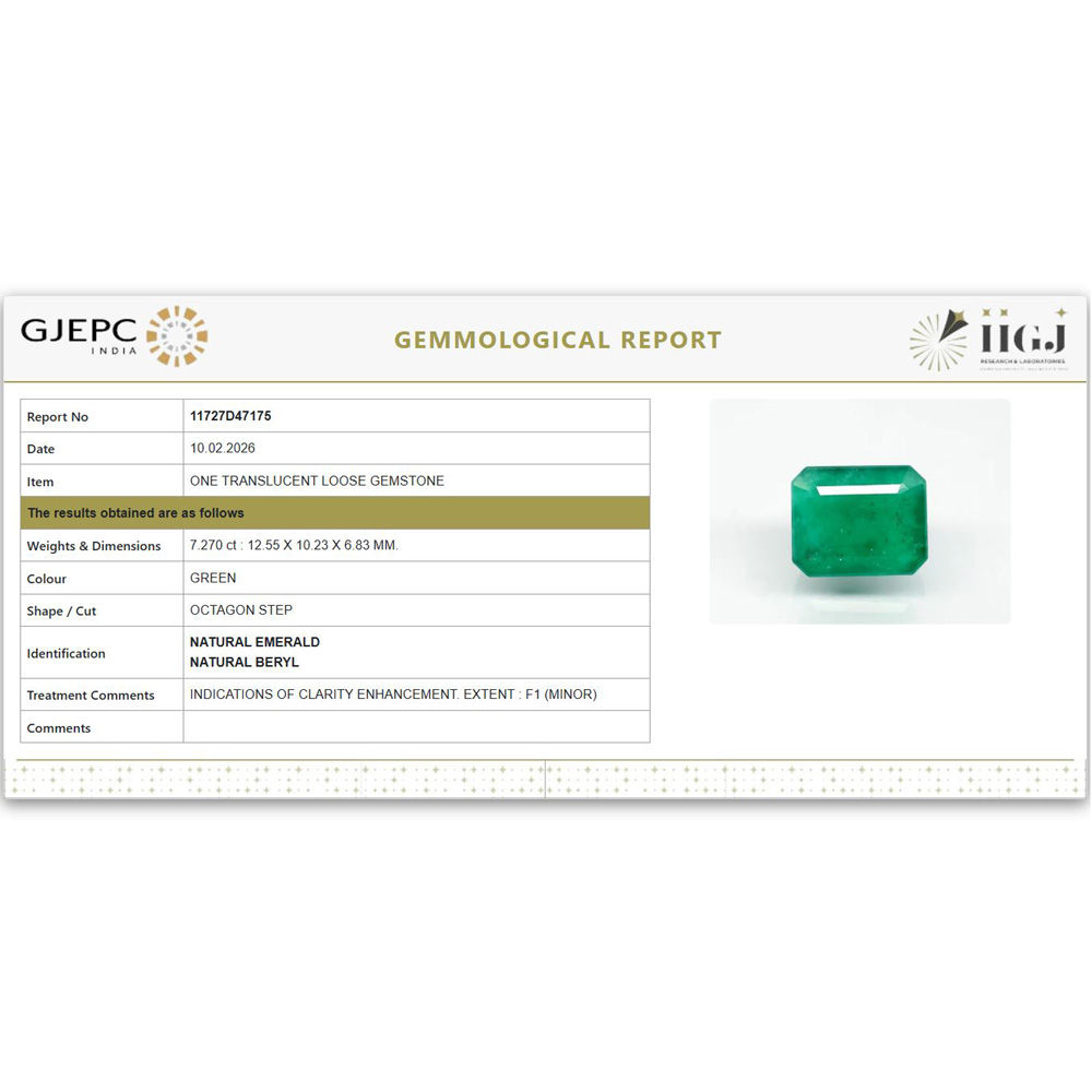 Buy Original and IIGJ-GJEPC (Govt. Lab) Certified Emerald (Panna Rashi Ratna), its photos and videos are available online (Original pictures no edited). 100% Natural with no resin treatment, Minor oil (commonly in emerald). Cut color clarity and price Ideally best for astrological purposes. Rare color according to price. Natural color no dying. Can be used for rings and pendants. Emerald Stone has many benefits like Business, Finance, Career, Marriage, child conceive. The value of stones is good considering its properties and effects. See the video or you may ask for a video before you make a purchase. We guarantee that our gemstone is better than you see in person.