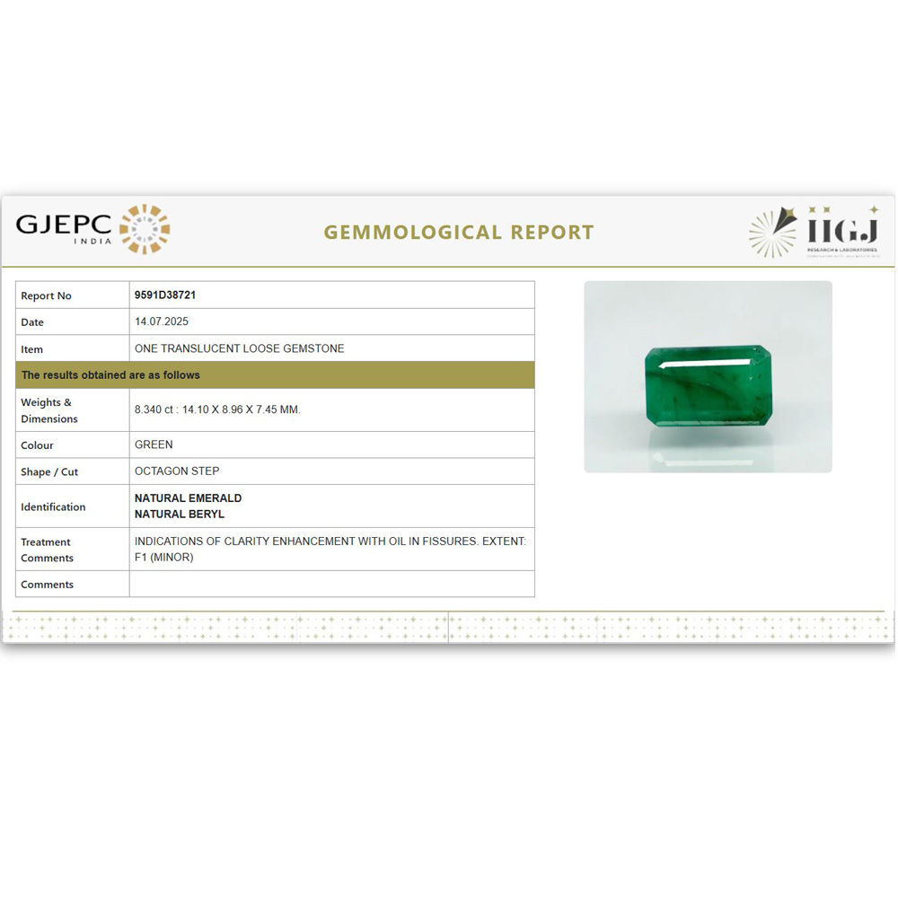 Buy Original and IIGJ-GJEPC (Govt. Lab) Certified Emerald (Panna Rashi Ratna), its photos and videos are available online (Original pictures no edited). 100% Natural with no resin treatment, Minor oil (commonly in emerald). Cut color clarity and price Ideally best for astrological purposes. Rare color according to price. Natural color no dying. Can be used for rings and pendants. Emerald Stone has many benefits like Business, Finance, Career, Marriage, child conceive. The value of stones is good considering its properties and effects. See the video or you may ask for a video before you make a purchase. We guarantee that our gemstone is better than you see in person.