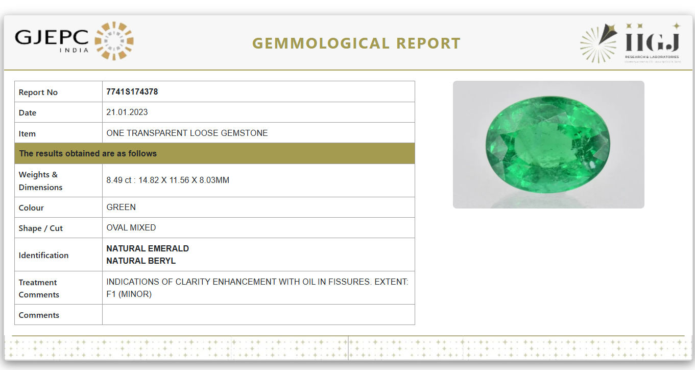 This Zambian Emerald is 100% Natural & IIGJ-GJEPC (Govt of India) Lab Certified Gemstone