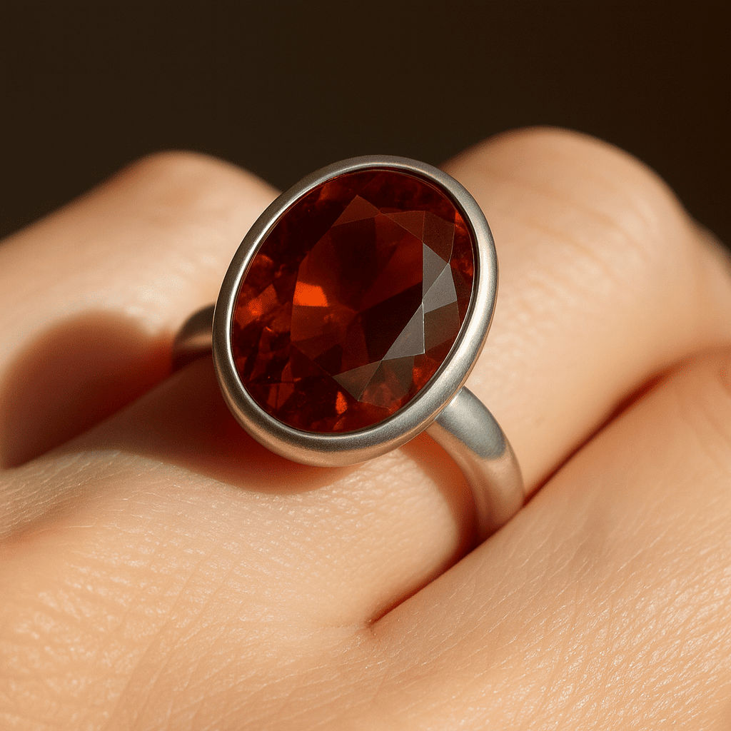 Hessonite Oval Sterling Silver Ring
