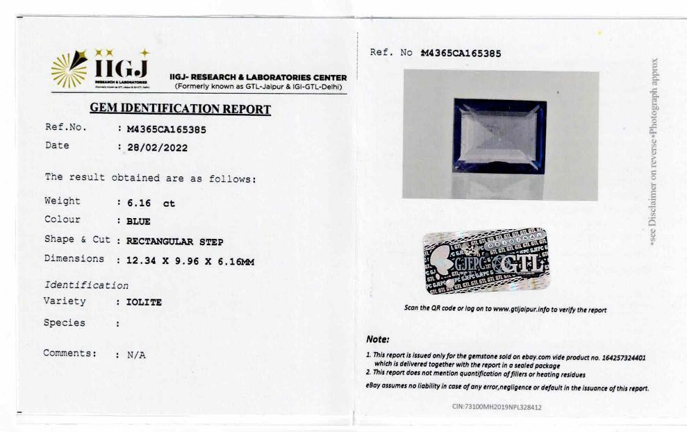This Iolite is a Natural and its certified from IIGJ(GJEPC)LAB, its originating from India.