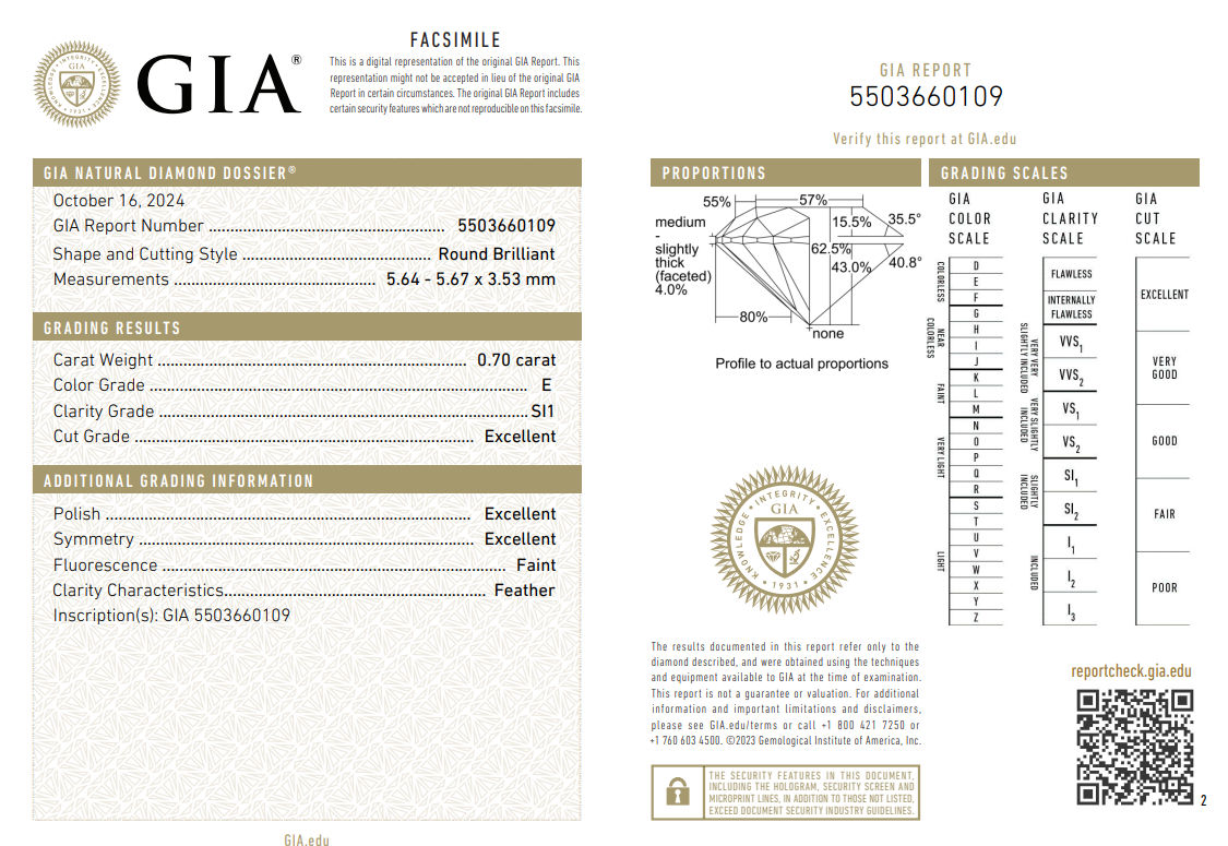 Natural Diamond 0.70ct GIA CERTIFIED