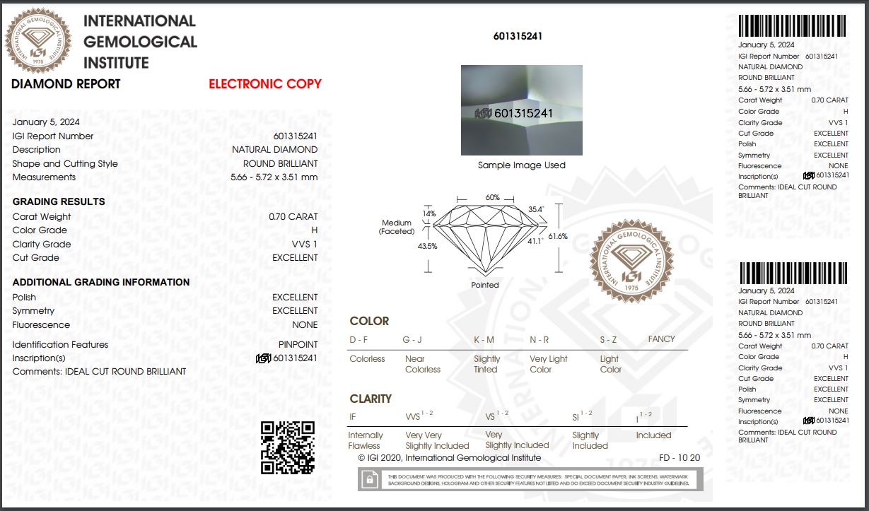 Natural Diamond H vvs1 0.50ct IGI Certified