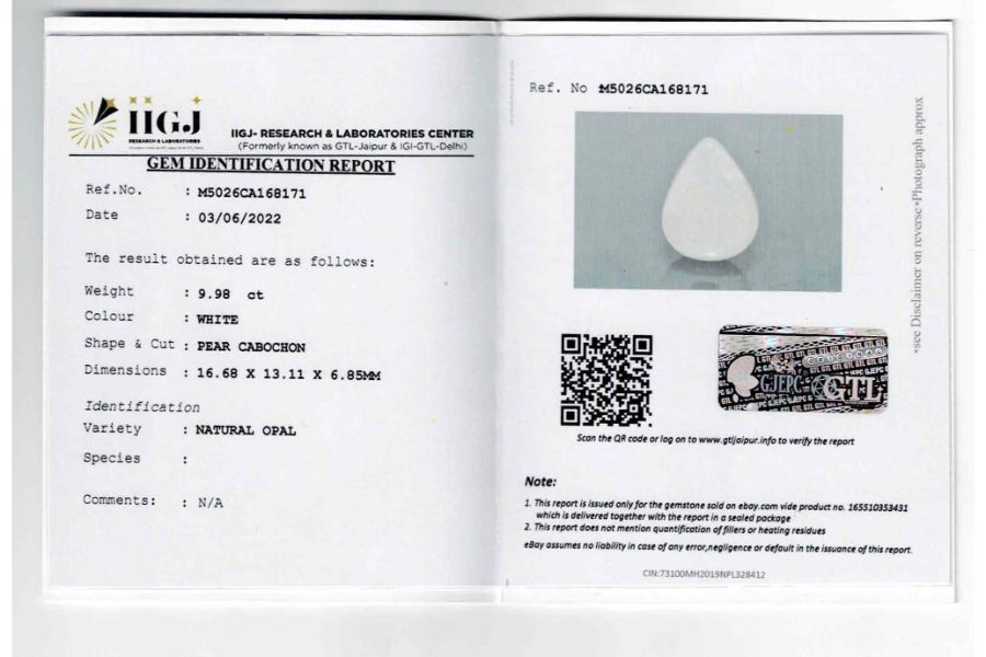 Buy this Original Natural and Certified Australian Opal 11.49ct(Rashi ratan).Its having very flashy fire(play of colors) on both side. This Opal comes with IGI-GTL certificate and its photos, videos are available online (Original pictures no photoshopped). This Australian opal is Ideally best for astrological purposes. Best play of color phenomena is observed and it belongs to cooper Pedy, Cooper Pedy is a town in northern South Australia, 846 km (526 mi) north of Adelaide on the Stuart Highway ,this place is often famous for opal mining’s .This opal? Can be used for rings and pendants. Opal uses in astrology as a diamond substitute is a milky opal it is white in color. Opal Stone has many benefits like Business, Finance, Career, Marriage, child conceive. corresponds to Venus, the planet of love according to Vedic Astrology. It signifies creativity, Precious arts, beauty, gemstones, jewelry, luxury, romance, marriage, the reproductive system, opulence, and refinement of the senses. The value of this opal is good considering its properties and effects. See the video or you may ask for a video before you make a purchase. We guarantee that our gemstone is better than you see in person. Price guaranteed according to worth Buy with confidence.