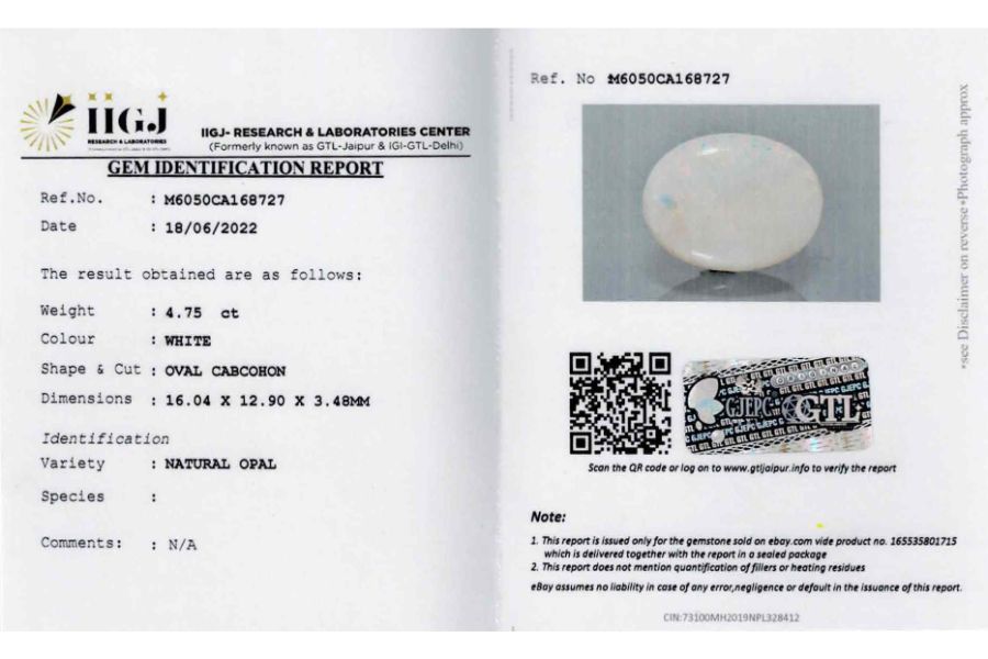 Buy this Original Natural and Certified Australian Opal 11.49ct(Rashi ratan).Its having very flashy fire(play of colors) on both side. This Opal comes with IGI-GTL certificate and its photos, videos are available online (Original pictures no photoshopped). This Australian opal is Ideally best for astrological purposes. Best play of color phenomena is observed and it belongs to cooper Pedy, Cooper Pedy is a town in northern South Australia, 846 km (526 mi) north of Adelaide on the Stuart Highway ,this place is often famous for opal mining’s .This opal? Can be used for rings and pendants. Opal uses in astrology as a diamond substitute is a milky opal it is white in color. Opal Stone has many benefits like Business, Finance, Career, Marriage, child conceive. corresponds to Venus, the planet of love according to Vedic Astrology. It signifies creativity, Precious arts, beauty, gemstones, jewelry, luxury, romance, marriage, the reproductive system, opulence, and refinement of the senses. The value of this opal is good considering its properties and effects. See the video or you may ask for a video before you make a purchase. We guarantee that our gemstone is better than you see in person. Price guaranteed according to worth Buy with confidence.