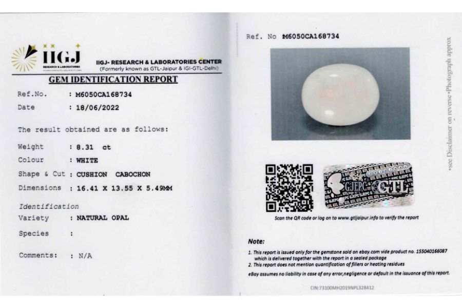 Buy this Original Natural and Certified Australian Opal 11.49ct(Rashi ratan).Its having very flashy fire(play of colors) on both side. This Opal comes with IGI-GTL certificate and its photos, videos are available online (Original pictures no photoshopped). This Australian opal is Ideally best for astrological purposes. Best play of color phenomena is observed and it belongs to cooper Pedy, Cooper Pedy is a town in northern South Australia, 846 km (526 mi) north of Adelaide on the Stuart Highway ,this place is often famous for opal mining’s .This opal? Can be used for rings and pendants. Opal uses in astrology as a diamond substitute is a milky opal it is white in color. Opal Stone has many benefits like Business, Finance, Career, Marriage, child conceive. corresponds to Venus, the planet of love according to Vedic Astrology. It signifies creativity, Precious arts, beauty, gemstones, jewelry, luxury, romance, marriage, the reproductive system, opulence, and refinement of the senses. The value of this opal is good considering its properties and effects. See the video or you may ask for a video before you make a purchase. We guarantee that our gemstone is better than you see in person. Price guaranteed according to worth Buy with confidence.