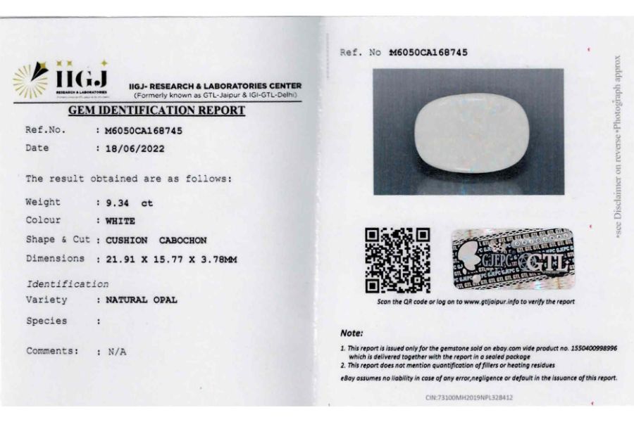 Buy this Original Natural and Certified Australian Opal 11.49ct(Rashi ratan).Its having very flashy fire(play of colors) on both side. This Opal comes with IGI-GTL certificate and its photos, videos are available online (Original pictures no photoshopped). This Australian opal is Ideally best for astrological purposes. Best play of color phenomena is observed and it belongs to cooper Pedy, Cooper Pedy is a town in northern South Australia, 846 km (526 mi) north of Adelaide on the Stuart Highway ,this place is often famous for opal mining’s .This opal? Can be used for rings and pendants. Opal uses in astrology as a diamond substitute is a milky opal it is white in color. Opal Stone has many benefits like Business, Finance, Career, Marriage, child conceive. corresponds to Venus, the planet of love according to Vedic Astrology. It signifies creativity, Precious arts, beauty, gemstones, jewelry, luxury, romance, marriage, the reproductive system, opulence, and refinement of the senses. The value of this opal is good considering its properties and effects. See the video or you may ask for a video before you make a purchase. We guarantee that our gemstone is better than you see in person. Price guaranteed according to worth Buy with confidence.