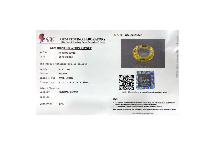 Real Zircon 5.17 Carat (5.74 Ratti)