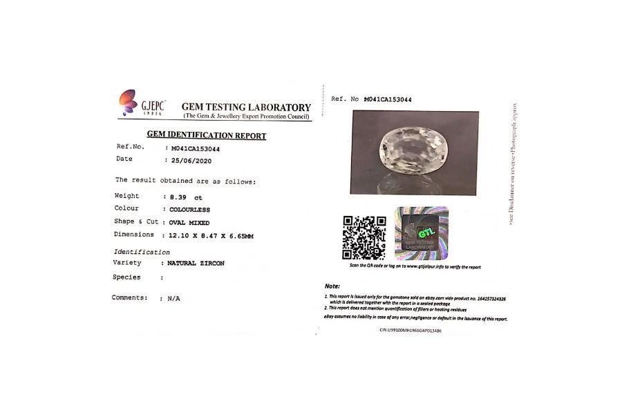 Real Zircon 6.69 Carat (7.43 Ratti)