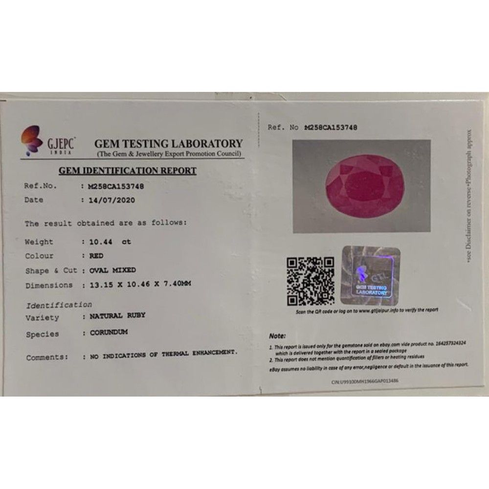 Ruby 10.44 Carat (11.48 Ratti)