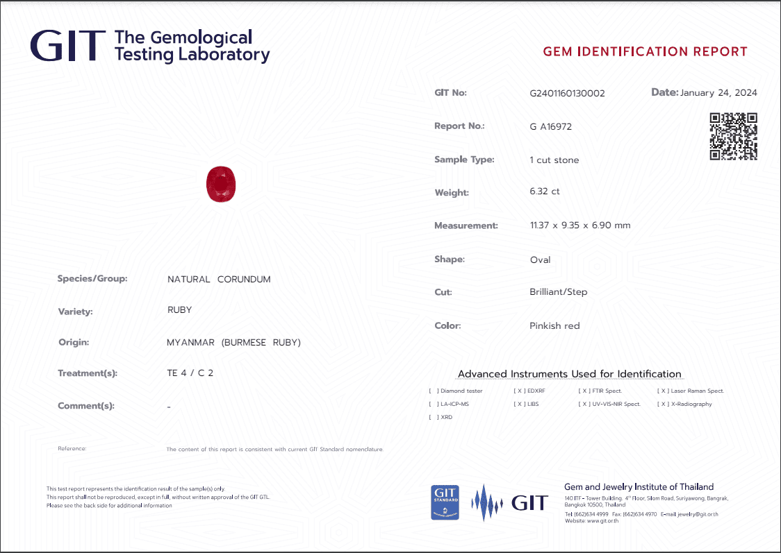 This Ruby is 100% natural unheated untreated GIT Certified gemstone.