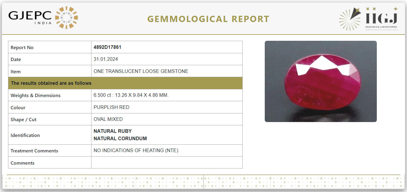 This Ruby is 100% natural unheated untreated IIGJ (Govt. Lab) Certified gemstone.