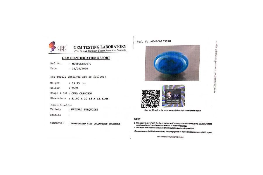 Natural Turquoise (Firoza) from Iran is 100% authentic gemstone. This Firoza Turquoise Stone is IGI-GTL lab-certified.