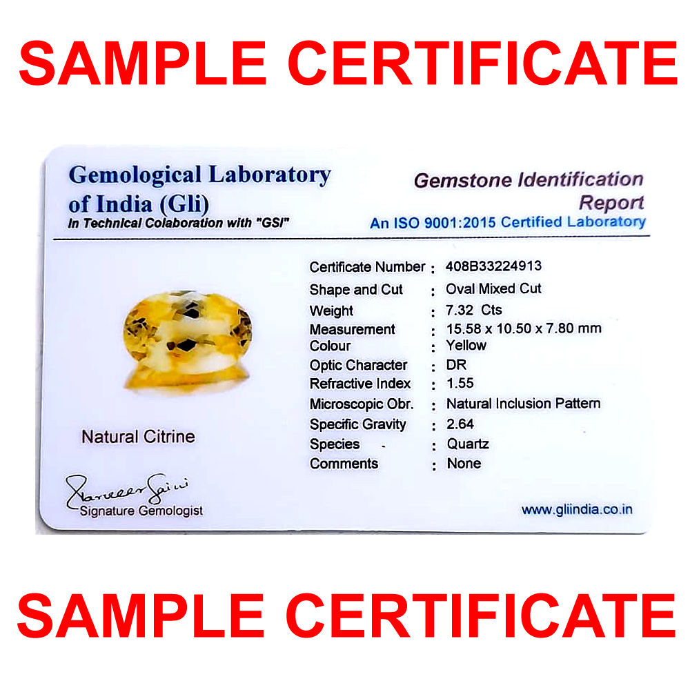 CITRINE, also known as Sunela, is a semi-precious gemstone coming from the variety of the Quartz mineral family. The color of this gemstone ranges from yellow to golden-brown however, this color is often by low heat. The Citrine gemstone is popularly worn as the substitute (upratna) to the Yellow Sapphire gemstone for financial success, the reputed image in the society, more knowledge, health, and progeny bliss. The Citrine gemstone can also be used as the alternate birthstone of November according to western astrology.